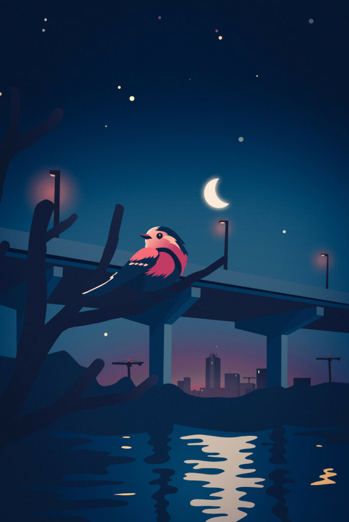 Le spectacle trace un chemin, de la tombée du jour aux premières lueurs de l’aube, à la rencontre de personnes et d’autres vivants qui peuplent la nuit, la racontent. Il parle de ses limites mouvantes, des esprits qui l’habitent, de la liberté ou du refuge qu’elle offre, des risques aussi de la voir disparaître, grignotée petit à petit par nos modes de vie et nos lumières qui semblent ne jamais s’éteindre…